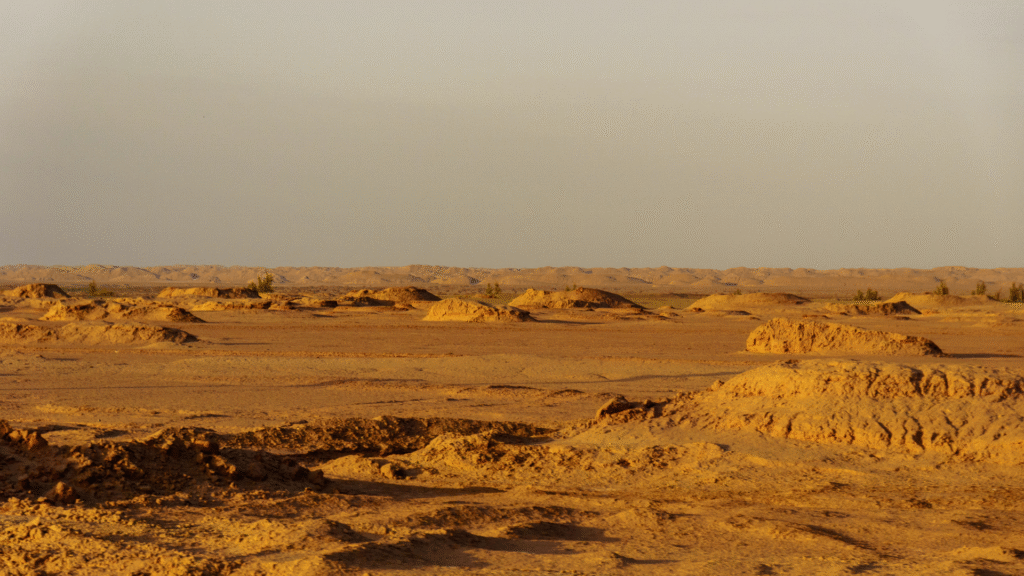 In the 1920s, explorers found the first dinosaur eggs here – proof that giants once walked this land. The Flaming Cliffs of Bayanzag still reveal fossils today. Local legends also speak of the “death worm,” a mythical creature said to live under the sands. Scientists never found it, but the myth persists, giving the Gobi an air of mystery.